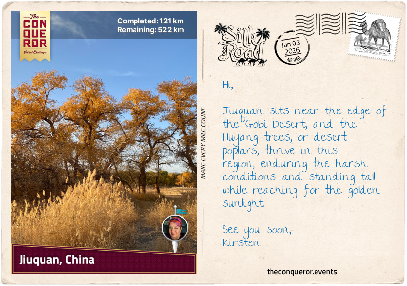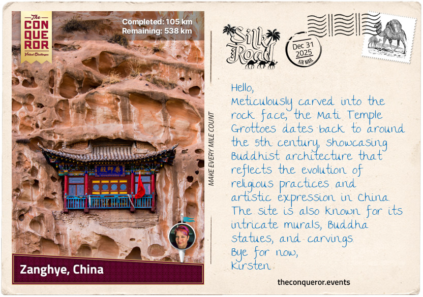This is another long challenge: 644 kilometres (400 miles). Discover the legendary Silk Road, where you can explore ancient trade routes, bustling marketplaces, and breathtaking desert landscapes that once connected the East and West.